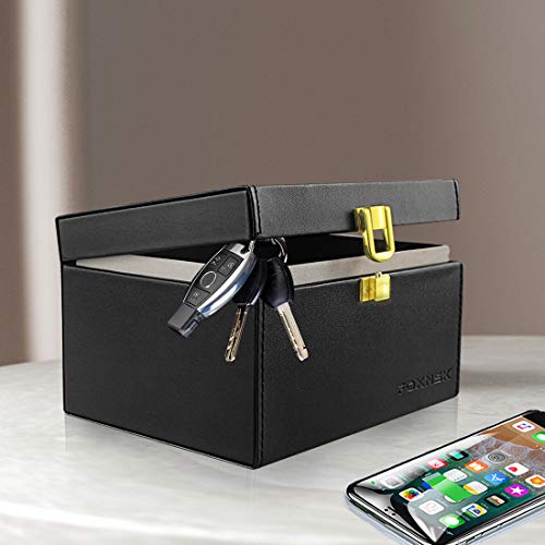 FOXNSK Faraday Scatola per Auto Chiavi, Pelle Segnale Blocker Scatola per Auto Chiavi FOB Cellulari Carte Keyless Iscrizione RFID Segnale Blocker & Anti-Furto Faraday Scatola Gabbia (Singolo Blocco)