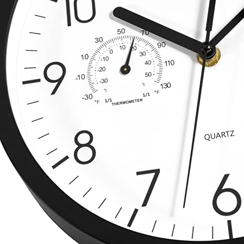 Foxtop Moderno Orologio da Parete Silenzioso con Termometro e Igrometro Display 25 cm Nero