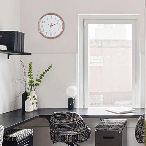 Design elegante: la cornice color oro rosa lo rende perfetto orologio da parete decorativo per ufficio, soggiorno, aula camera da letto, bagno. A differenza di altri utilizzando cartone come sfondo dell'orologio che facilmente danneggiato in umidità e stagione umida, questa base posteriore dell'orologio sono realizzati in plastica solida, quindi rimangono ben funzionanti e asciutti in qualsiasi condizione atmosferica.