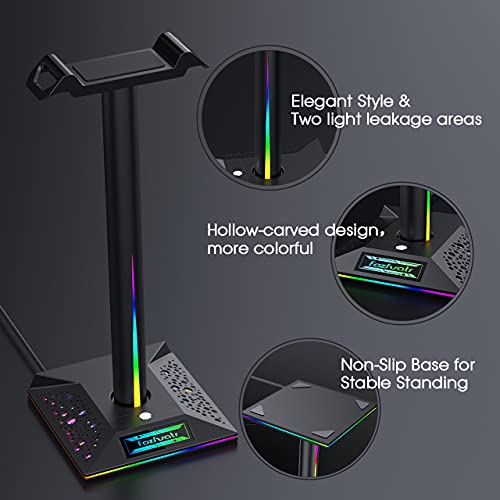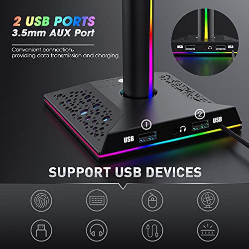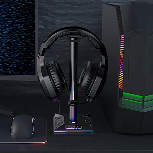 FOZHUATR Supporto per cuffie RGB con 2 porte USB e AUX da 3,5 mm, supporto per cuffie da tavolo Supporto per cuffie da gioco durevole per accessori per cuffie da gioco per PC