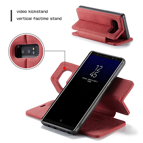 Fqiao Samsung Note 8 ultra sottile in pelle con anello da dito, custodia e mano anello con supporto separabili Removabl custodia con slot per schede PU durevole protezione completa per Samsung Note 8 2017 Release rosso red
