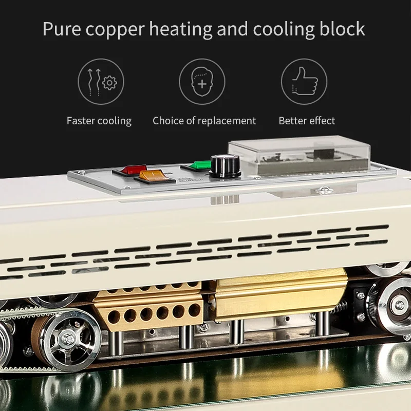 FR-900 Horizontal Continuous Band Sealer Printable Date Film Bag Automatic Heat Sealing Machine Food Sealer