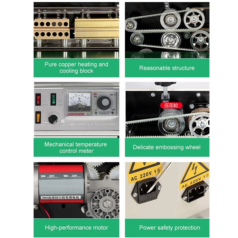 FR-900 Horizontal Printable Continuous Band Sealer Heat Sealing Machine Date Film Bag Automatic Food Sealer