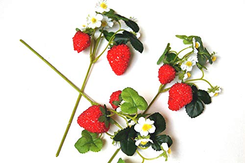 3 rami di fragole artificiali, 30 cm, colore rosso.