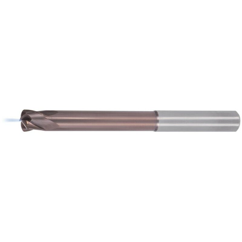 Fresa a candela con raggio d'angolo. Signum - Versione extra lunga - Metallo duro integrale - Standard di fabbrica - Tipo H - Angolo elica 30° - 4 scanalature - Gambo DIN 6535-HA - Con taglio centrale - Utilizzabile per sgrossatura HSC Nota: Utilizzo con raffreddamento INOX.