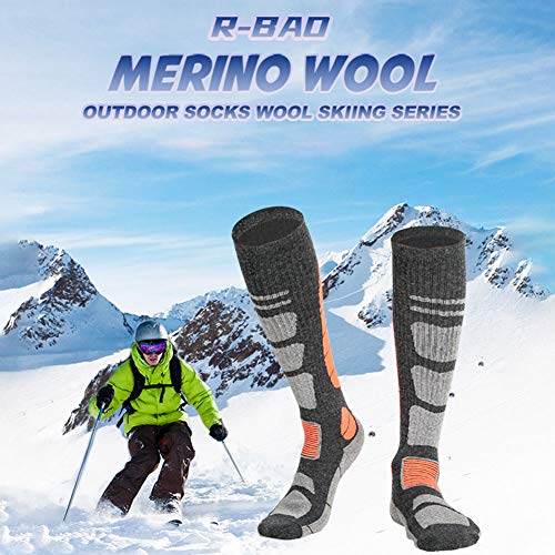 FralnFit Calze da sci Invernali per Uomo, Calze Termiche Spesse in Lana Artificiale per sci, Escursionismo, Sport All'aria Aperta(Arancio grigio scuro,size:18 * 41cm/7.09 * 16.14inch)