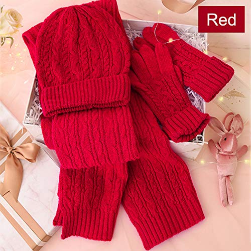 FralnFit Sciarpa Guanto Cappello Set, Morbido Caldo Maglia 3 Pezzi per Uomo e Donna, Autunno e Inverno Warmer Outdoor Set per Outdoor Passeggiate, Shopping, Sci, Pesca e Cmping(Red)
