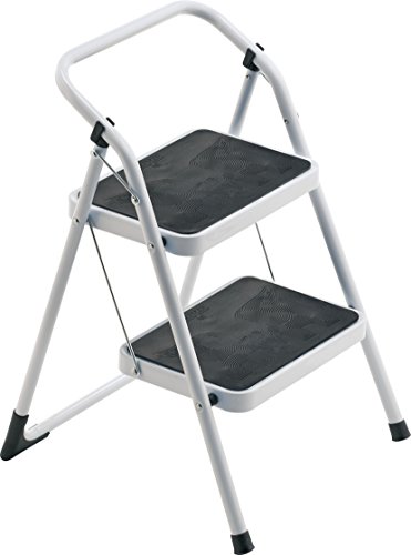 FRAMAR Major 2 Sgabello, 2 Gradini con Tappetino Antiscivolo, con Blocco di Sicurezza, Portata 150 kg, Alluminio, Acciaio, Bianco, 49 x 51 x 71 cm
