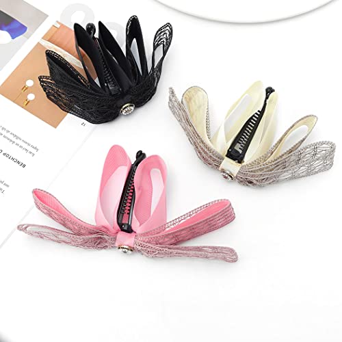 IYOU Francese Banana Fermaglio per capelli per capelli Rosa Pizzo Capelli Artiglio Impugnature La Moda Coda di Cavallo Titolare Accessori per Capelli per Donne e Ragazze (Confezione da 3)