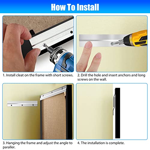 FACILE DA INSTALLARE: Il kit di staffe ad incastro Z Bar include tutti gli strumenti hardware di fissaggio che possono essere installati in modo rapido e semplice, le grucce si sollevano per essere fissate o rimosse in pochi secondi. I paracolpi in gomma proteggono la superficie della parete e mantengono l'opera d'arte uniformemente lontana dalla parete.