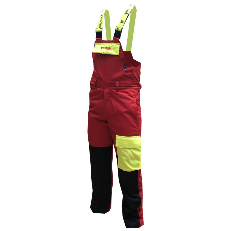 Dettagli: Tuta protettiva per utilizzatori di motoseghe PROTEZIONE DELLA GAMBA - EN ISO 11393-2 tipo A classe 2 - 24 m/s. Protezione con tecnologia SoFly®. DESCRIZIONE: 2 tasche per cuciture. 1 tasca per il righello. Fascia elastica in vita. Pettorina e spallacci elasticizzati larghi 35 mm. Tasca posteriore applicata, chiusa da una patta giallo fluorescente. Cavallo: 82 cm Caratteristiche: Tessuto 67%poliestere 33%cotone 245 gr/m². Colore verde bosco o rosso. Fodera 100% poliammide Concetto SOFLY®™ sul sistema di protezione. RossoM Tissu 67%polyester 33%coton 245 gr/m² coloris vert forêt ou rouge. Doublure 100% polyamide Concept SOFLY®™ sur le système de protection.