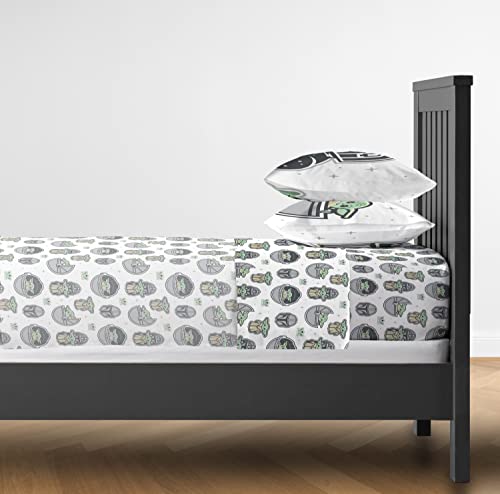 Jay Franco Star Wars The Mandalorian The Cutest Bounty - Set di 4 lenzuola matrimoniali in 100% cotone, include lenzuolo con angoli, lenzuolo e federe