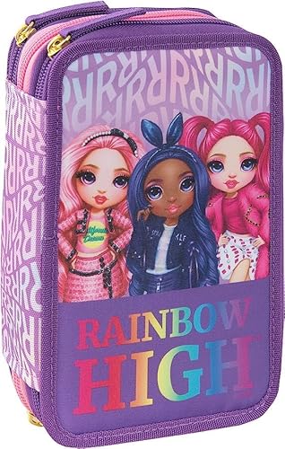 Franco Panini. Astuccio Scuola Rainbow High 3 Zip Completo Triplo con Colori 20x12x6 cm + Braccialetto Amicizia e Penna Colorata in Omaggio