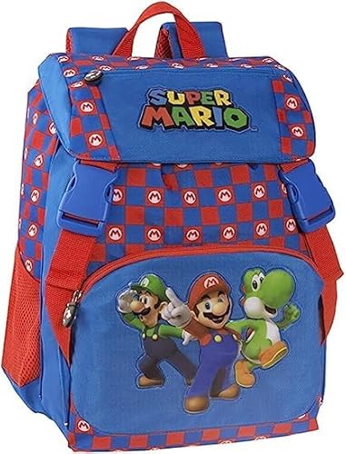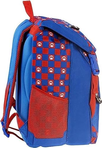 Franco Panini. Schoolpack Zaino Super Mario Estensibile Blu 40x29x14 cm + Astuccio 3 Zip Triplo + Portachiavi Cubo in Omaggio