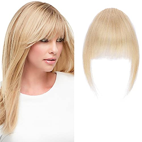 SEGO Frangia Clip Capelli Veri Frangetta Carina Lunghezze Stesse (Misure 5.5cm*14.73cm Tempie 27.93cm) 100% Remy Human Hair Bang 9g #24 Biondo Naturale
