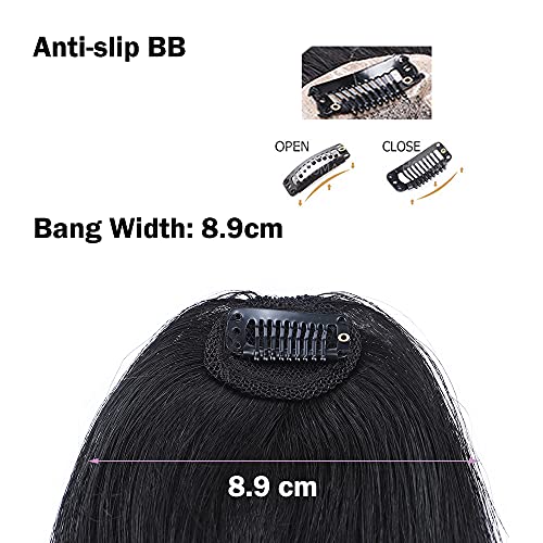 SEGO Frangia Clip Capelli Veri Frangetta 2 Lati alla Francese Set da 2 Pezzi 100% Remy Human Hair Bang Effetto Multi-Livello #1 Jet Nero