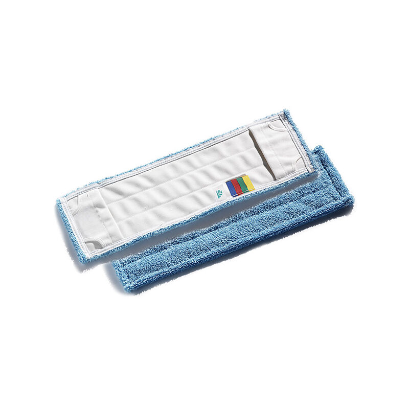 Microbue Frangia in microfibra cm 50 con tasche e supporto in poliestere e etichette codice colore. La microfibra raccoglie e trattiene la polvere e lo sporco meglio di ogni altra soluzione tradizionale e li rilascia in fase di risciacquo. Per lo spolvero, il lavaggio e la disinfezione di pavimenti lisci interni con grado di sporco medio-basso . Utilizzabile con i telai Wet Disinfection. Metodo di lavaggio: Temperatura di lavaggio: max 90°. No ammorbidente. Candeggio senza cloro. Programma di asciugatura a temperatura ridotta. Conforme ai CAM Pulizia generale e Pulizia e sanificazione nelle strutture sanitarie (DM 29/01/2021): la microfibra necessita di meno detergente per rimuovere sporco e batteri, riducendo i consumi di acqua e chimico CARATTERISTICHE TECNICHE - Dimensioni cm (WxDxH): 50 x 16 x - Materiale: Microfibra