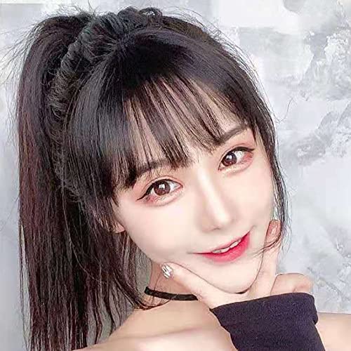 Frangia Sottile Capelli Veri, Frangia Clip Veri Naturali Frangetta Air Bangs Finta Frangia Capelli Clip Frangia Extension Donna, Frangia Clip Capelli Veri Extension Frangetta(Nero)