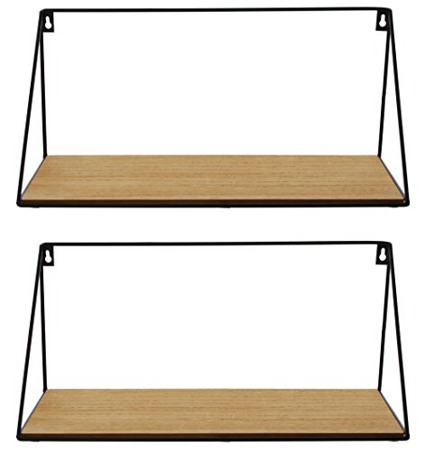 FRANK FLECHTWAREN Serie 2 mensole da parete, design semplice e moderno, metallo laccato nero opaco, bordo in legno con grana naturale