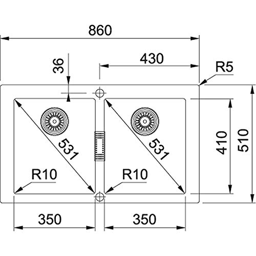 Dimensioni del bacino: 350 x 410 x 200 mm (x2)