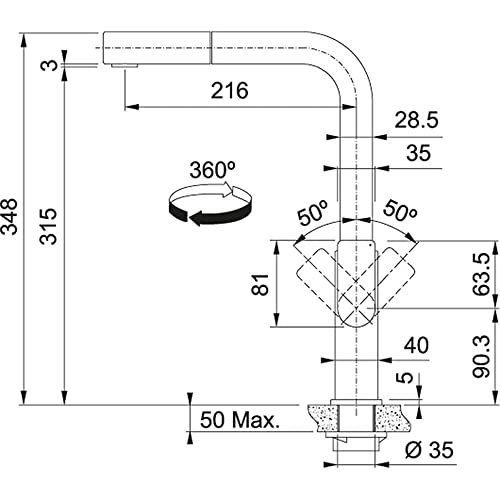 Franke Mythos Pull-out-Rubinetto per lavello, in Acciaio Inox, 115.0550.442 Colore: Nero, Edelstahl Schwarz