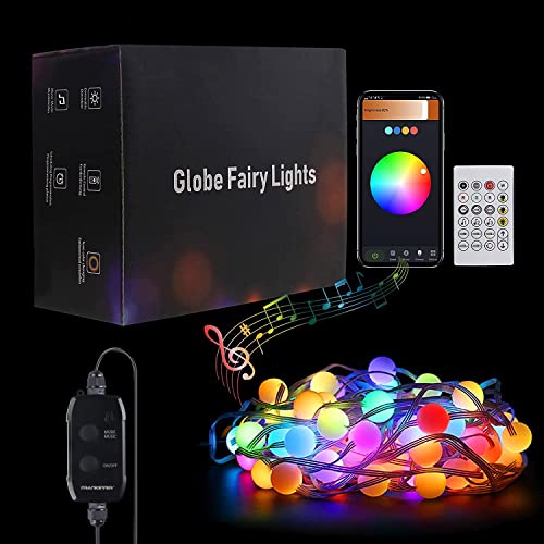 Effetto RAINBOW RAINBOW AMZING RGBIC: Chip personalizzato ic nel nostro globo stringa luce mostra più colori contemporaneamente oltre 16 milioni di colori, 1%-100% controllo della luminosità, 7 scene (come album fotografici, sfondi TV, alberi di Natale), 54 modalità di scena cambiano, come un arcobaleno è agitare, lampeggiare, fluire, saltare, inseguire, flussi e molto altro ancora.