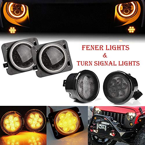 Fransande - 4 luci LED lampeggianti + luci di protezione per parafango, marcatore laterale per JK 2007-2017