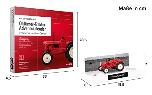 FRANZIS 67067 Porsche Oldtimer-Traktor Adventskalender 2019, in 24 Schritten zum Porsche Master 419 unterm Weihnachtsbaum, für Sammler und Modellbau-Liebhaber, ab 14 Jahren
