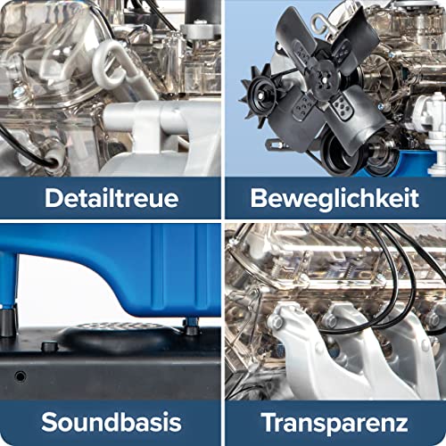 FRANZIS FRANZIS-67501 67501-Motore Ford Mustang V8, Kit Motore Fedele all'originale in Scala 1:4, incl. modulo sonoro, Istruzioni e Libretto di 100 Pagine, Colore Trasparente, 67501