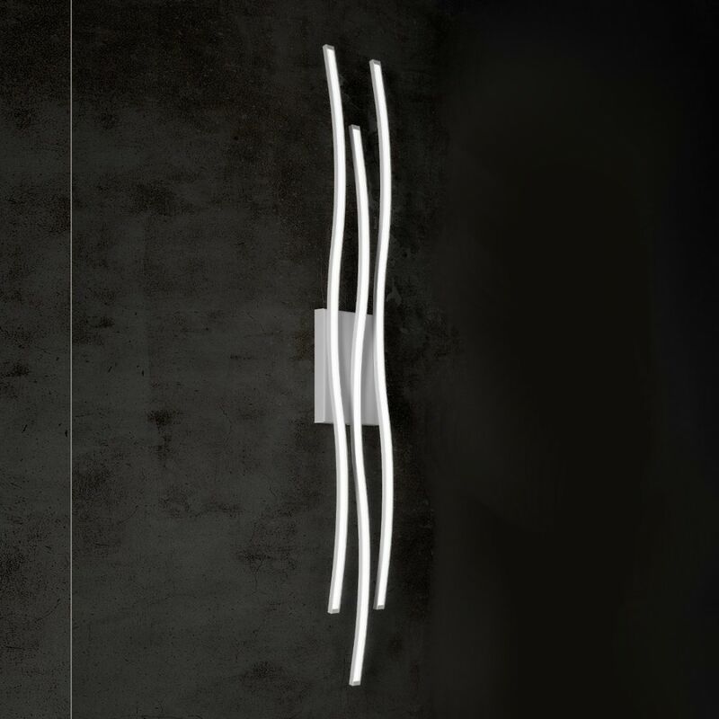 Plafoniera o applique moderna di ultimo design con sorgente luminosa a led. Una lampada da soffitto originale che illumina e al tempo stesso arreda la stanza. Un corpo illuminante da adattare in qualsiasi stanza. Un prodotto Made in Italy. Plafoniera moderna Fratelli Braga SCIA 2127 PL3 LED Lampada da soffitto o da parete in metallo verniciato o decorato, a led, luce calda SCIA PL3 è una plafoniera o applique dal carattere moderno formata da tre barre luminose a LED che illuminano l'ambiente con una luce intensa a basso consumo di corrente. La struttura in metallo verniciato bianco, grigio (come foto), oro o nero oppure decorato artigianalmente a mano in foglia oro. Misura una lunghezza di 113 centimetri ed una sorgenza di 7 centimetri. La plafoniera è completa di moduli led da 51W a 4100lm con tonalità di luce calda (3000°K), a richiesta anche a 2700°K o 4000°K. A richiesta DIMMERABILE. Classe energetica A++. Grado di protezione IP20 adatto ad ambienti interni con assenza di umidità.