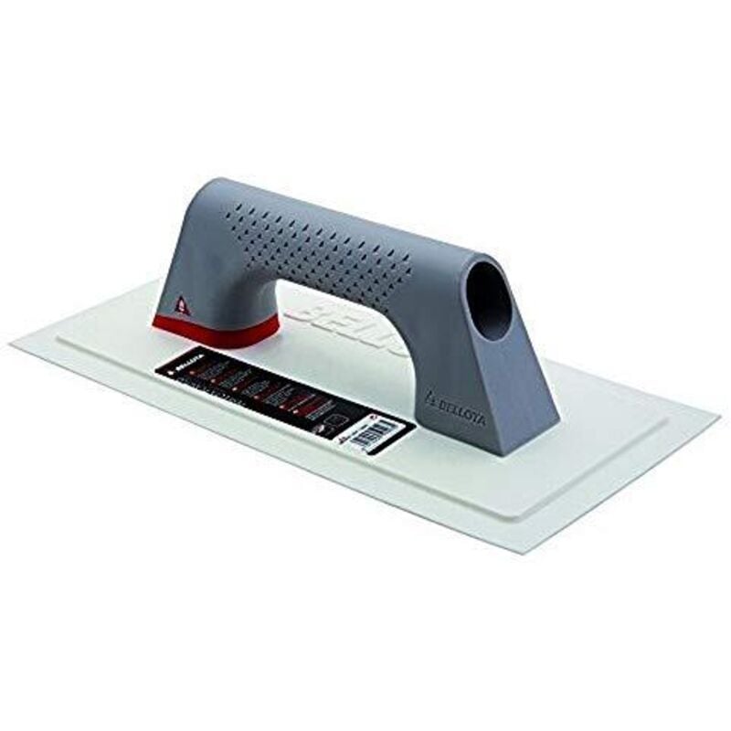 Frattazzo in polipropilene con bordi flessibili. Impugnatura in plastica molto leggera. 300x140 mm. 245 gr.
