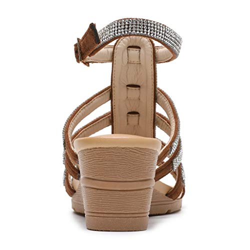 FRAUIT Sandali Donna Zeppa Eleganti Sandalo Romani Ragazza Alti Scarpe Donna Eleganti Estive Tacco Sandali Gioiello Da Spiaggia Mare Piscina Alla Schiava