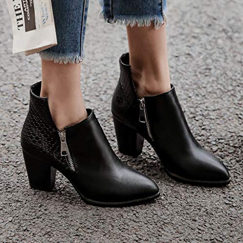 FRAUIT Stivali Donna Tacco Largo Stivaletti Con Tacco Trasparente Scarponcini Ragazza Pelle Polacchine Invernali Con Tacco Stivali Alti Classici Boots Cuoio Sneakers Scarpe Antinfortunistiche
