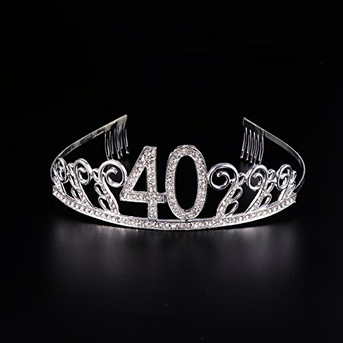 Frcolor Corona di compleanno per 40 anni, diadema con cristalli, con pettini (argento)