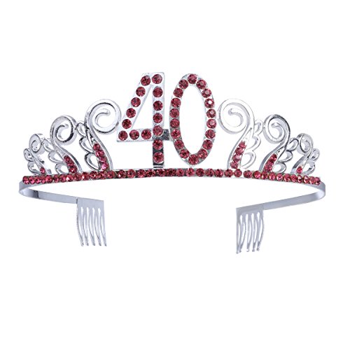 Frcolor Corona di compleanno 40 anni tiara diadema da principessa con pettine strass cristallo argento rosso