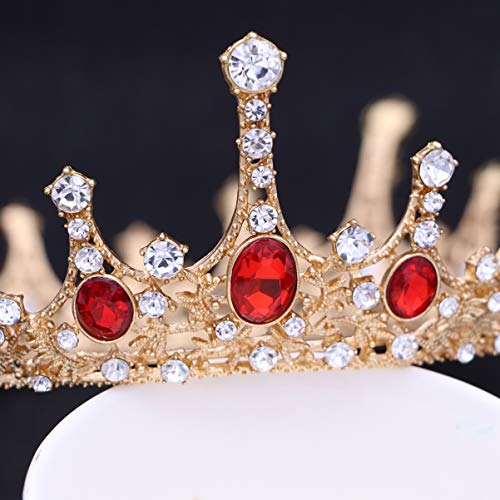 Frcolor - Corona da sposa con pietre strass rosse, diadema, tiara vintage, per feste di nozze, da sposa