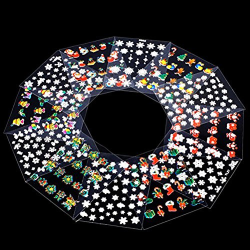 Frcolor 12 fogli autoadesivo di arte del chiodo del fiocco di neve del fiocco di trucco del manicure della decalcomania della punta del chiodo di Natale