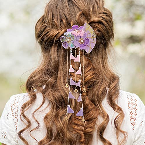 FRCOLOR Forcina giapponese lunga nappa fermaglio per capelli classico fiore fermaglio per capelli kimono canapa Yukata accessorio per capelli viola