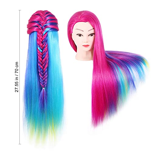 FRCOLOR Frcolor, testa di manichino per capelli, acconciatura per capelli, capelli in fibra sintetica, testa di manichino con morsetto da tavolo e set per acconciature