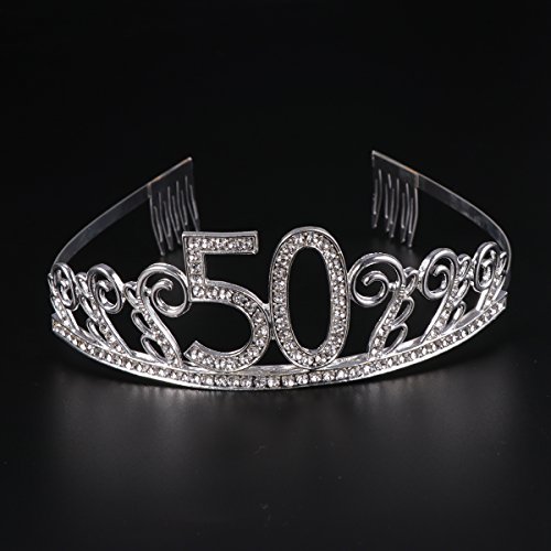 Frcolor - Tiara argentata con strass da donna - ideale come regalo per un compleanno di 50 anni - tiara con pettinini