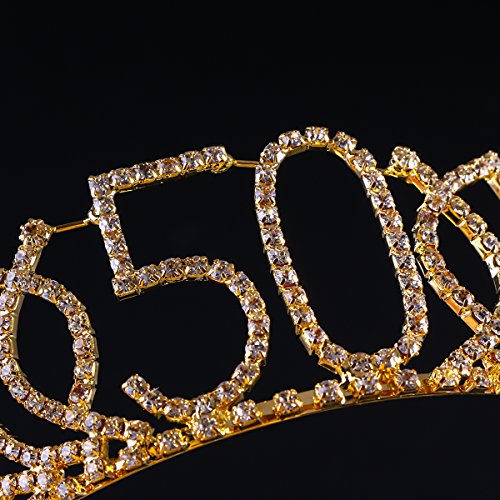 Tiara dorata con strass, da principessa, ideale come regalo per un compleanno di 50 anni.