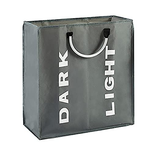 Cesto portabiancheria a 2 scomparti: il cesto della biancheria è diviso in tre sezioni, contiene 2 scomparti invece di 2 sacchetti per la biancheria. I nostri vestiti possono essere posizionati chiaramente nella corrispondente area di classificazione del colore, per evitare la tintura reciproca e distinguere vestiti di diversi colori o materiali.