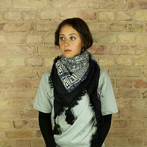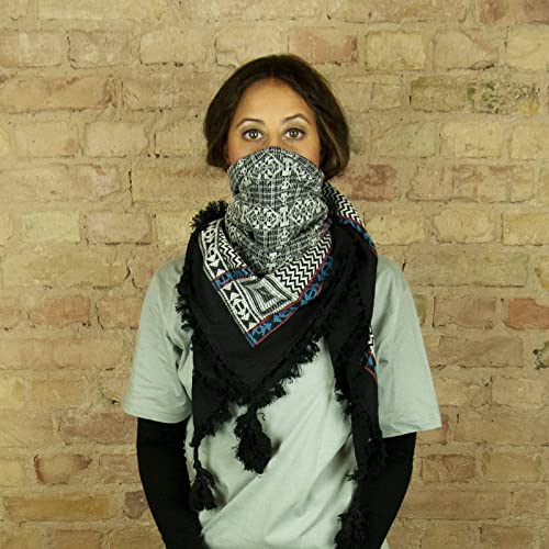 Freak Scene kefiah dettagliata elegante - sciarpa palestinese - nero-bianco - Modello 2-120x120 cm - Shemagh - Sciarpa Arafat Foulard kefiah palestinese 100% cotone