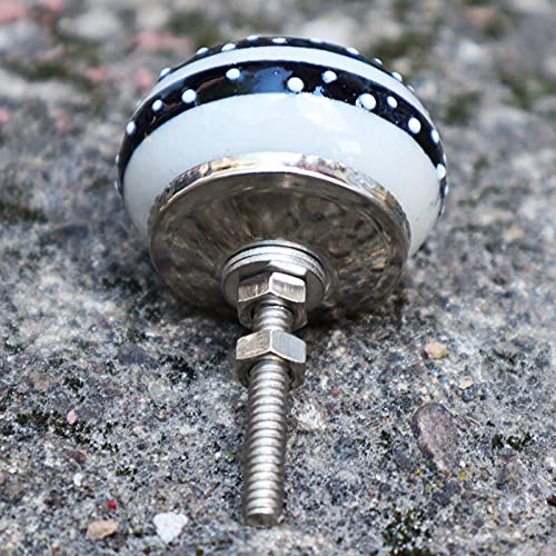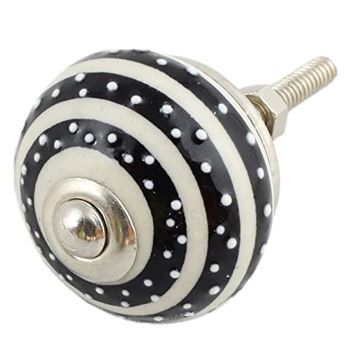 Freak Scene Pomello in ceramica shabby chic - Righe - Punti - nero -bianco