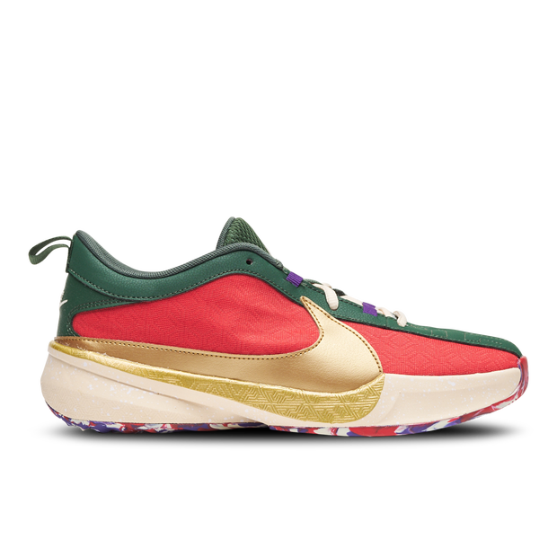 Gioca con grinta Muoviti sul parquet come un campione con le Nike Giannis Antetokounmpo Freak 5. Veloci e originali come Giannis, queste sneakers sono dotate di una chiusura a strappo per una calzata aderente e un supporto adeguato, durante il gioco e fuori dal campo. Porta le tue abilità ad alti livelli con l'avampiede flessibile e le scanalature flessibili della suola. La schiuma sagomata offre un'ammortizzazione imbattibile e un ritorno di energia illimitato per agevolare la tua andatura. Con scanalature tecnicamente avanzate per una migliore aderenza, la suola antiscivolo ti aiuta a mantenere il ritmo dei tuoi passi, sempre saldi e sicuri in qualsiasi situazione. Caratteristiche delle Nike Giannis Antetokounmpo Freak 5: * Chiusura con velcro * Passante oversize sul tallone * Scanalature flessibili sulla suola * Schiuma sagomata * Scanalature di tenuta tecnicamente avanzate sulla suola