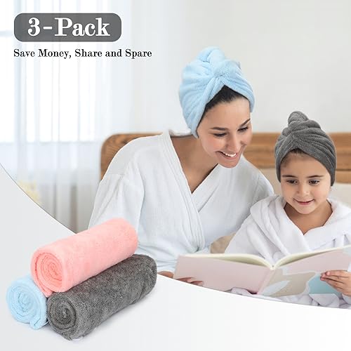 FREATECH 3 Pezzi Asciugamano Capelli in Microfibra - Asciugare Rapidamente i Capelli Bagnati senza Crespo, Turbante Capelli Morbido e Assorbente con 3 Bottoni per Donna, Bambino, Capelli Lunghi Ricci