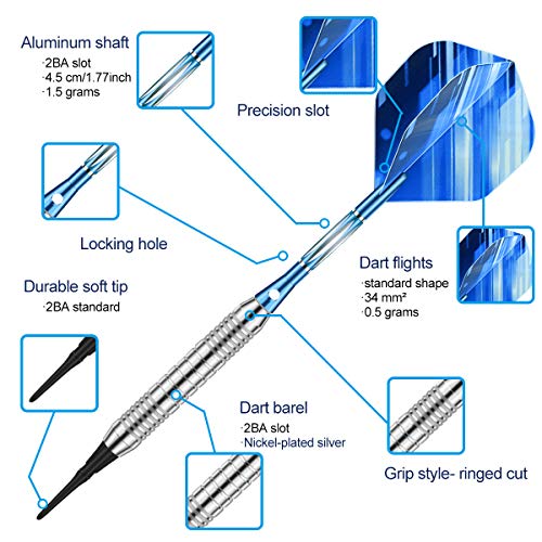 Freccette Professionali Punta Plastica, Set di 3 Freccette Morbide per Bersaglio Elettronico con 6 Freccette Voli e 30/50 Punte Morbide di Freccette 50 O-Ring Anti-Allentati 18/20 Grammi