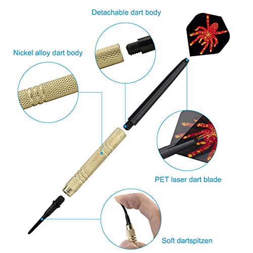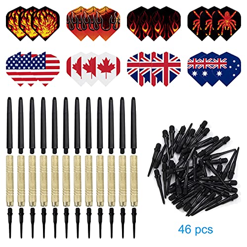 Set di freccette a punta morbida: 12 freccette, 24 ali (8 stili diversi, 3 di ciascuno), 46 punte extra in plastica nera, facile da godere il gioco delle freccette elettriche.