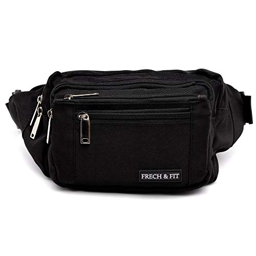 Frech & Fit Marsupio Borsa Tracolla Multifunzionale Marsupio con 5 scomparti e pioggia protezione - adatto per Viaggio Sport Hobby tempo libero e tutte le attività all' aria aperta - nero per uomo e donna