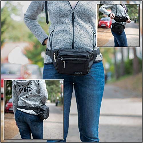 Capacità: la sfacciato & Fit marsupio dispone di un totale di 5 tasche con cerniera. Qui si possono molti oggetti di uso quotidiano come cellulare, Borsa, portafogli, portachiavi, Fotocamera, guinzaglio e persino 2 bottiglie fino a 500 ML.